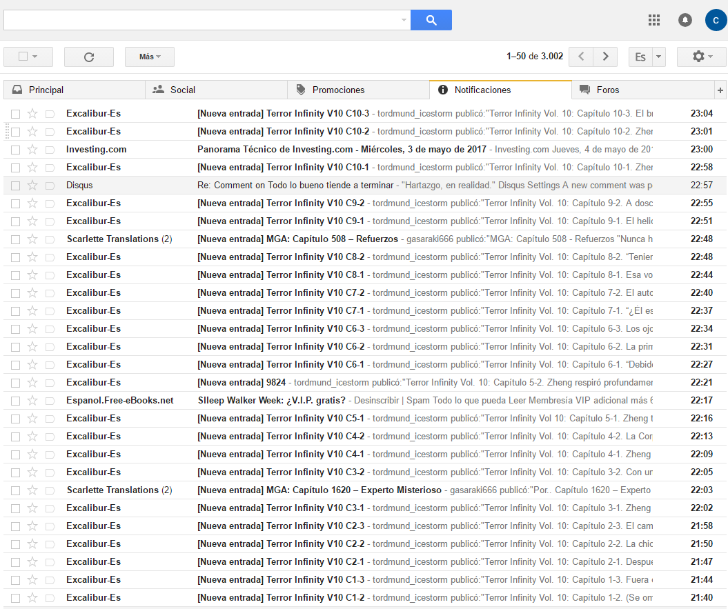 Ya iba a celebrar su terminación, es la fuente de spam en el blog, un día me dejaron casi sin visitas por la cantidad aterradora de capítulos.